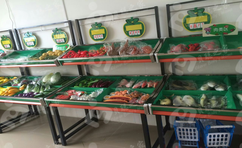 根据模拟现实生活中的超市场景,将学生的“学习”融入“生活”,模型造型美观,有创意,接近现代生活,能达到一边玩一边学习的效果。有玩的过程中对新事物充满着好奇心而不断认知,不断学习。造型色彩艳丽,能有效的提高小朋友的色彩识别感,既美化了教学环境,又激发了学生的智力发展,增强了学生的生活能力和社会实践能力。整体教育设备以环保材料为主,以真实购物情景为主。内设收银台、蔬菜区、肉类区、生活用品区、文具区等。