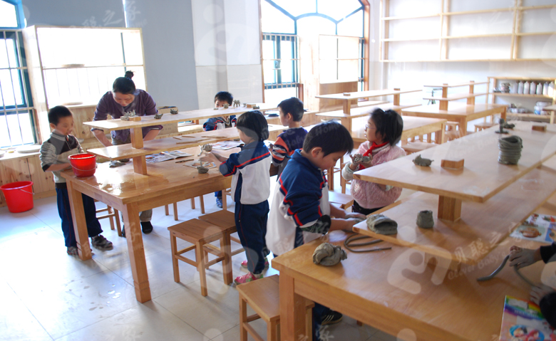 陶艺室是培养孩子陶艺兴趣、激发孩子动手、动脑习惯,以及手、眼、脑协调互动的过程,儿童的智力发展起源于动作,而学陶艺的过程不仅可以开发儿童的智力,还可以发展他们的感知力、观察力和创造力,提高孩子的动手能力。我们的陶艺课程以陶泥、瓷泥等多种材质创造生活中既能用又能欣赏的立体艺术品。